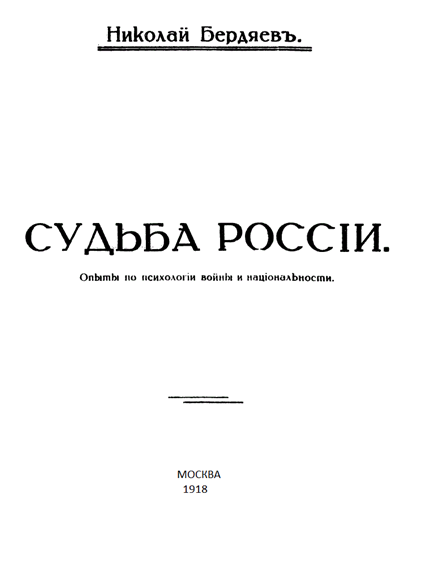 Мировая война остро ставит вопрос о русском национальном самосознании. Русская национальная мысль чувствует потребность и долг разгадать загадку России, понять идею России, определить ее задачу и место в мире. Все чувствуют в нынешний мировой день, что Россия стоит перед великими мировыми задачами. Но это глубокое чувство сопровождается сознанием неопределенности, почти неопределимости этих задач. С давних времен было предчувствие, что Россия предназначена к чему-то великому, что Россия — особенная страна, не похожая ни на какую страну мира. Русская национальная мысль питалась чувством богоизбранности и богоносности России. Идет это от старой идеи Москвы, как Третьего Рима, через славянофильство — к Достоевскому, Владимиру Соловьеву и к современным неославянофилам. К идеям этого порядка прилипло много фальши и лжи, но отразилось в них и что-то подлинно народное, подлинно русское, Не может человек всю жизнь чувствовать какое-то особенное и великое призвание и остро сознавать его в периоды наибольшего духовного подъема, если человек этот ни к чему значительному не призван и не предназначен. Это биологически невозможно. Невозможно это и в жизни целого народа.