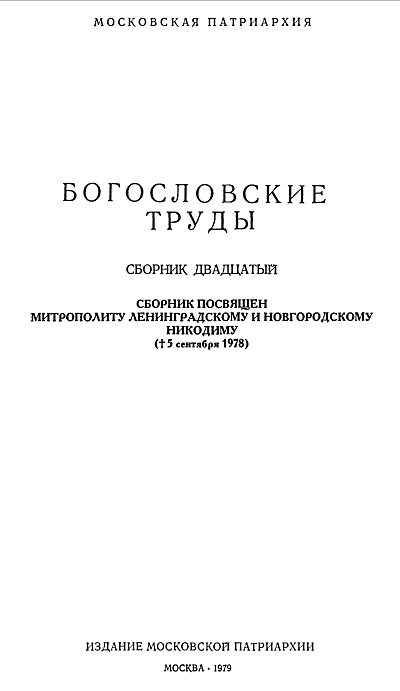 Магистерская диссертация, написанная а 1969 году и защищенная в Московской духовной академии 15 апреля 1970 года («Журнал Московской Патриархии», 1970, № 7, с. 39—41), 657 стр. машинописи. Публикуется в сокращении.— Ред.