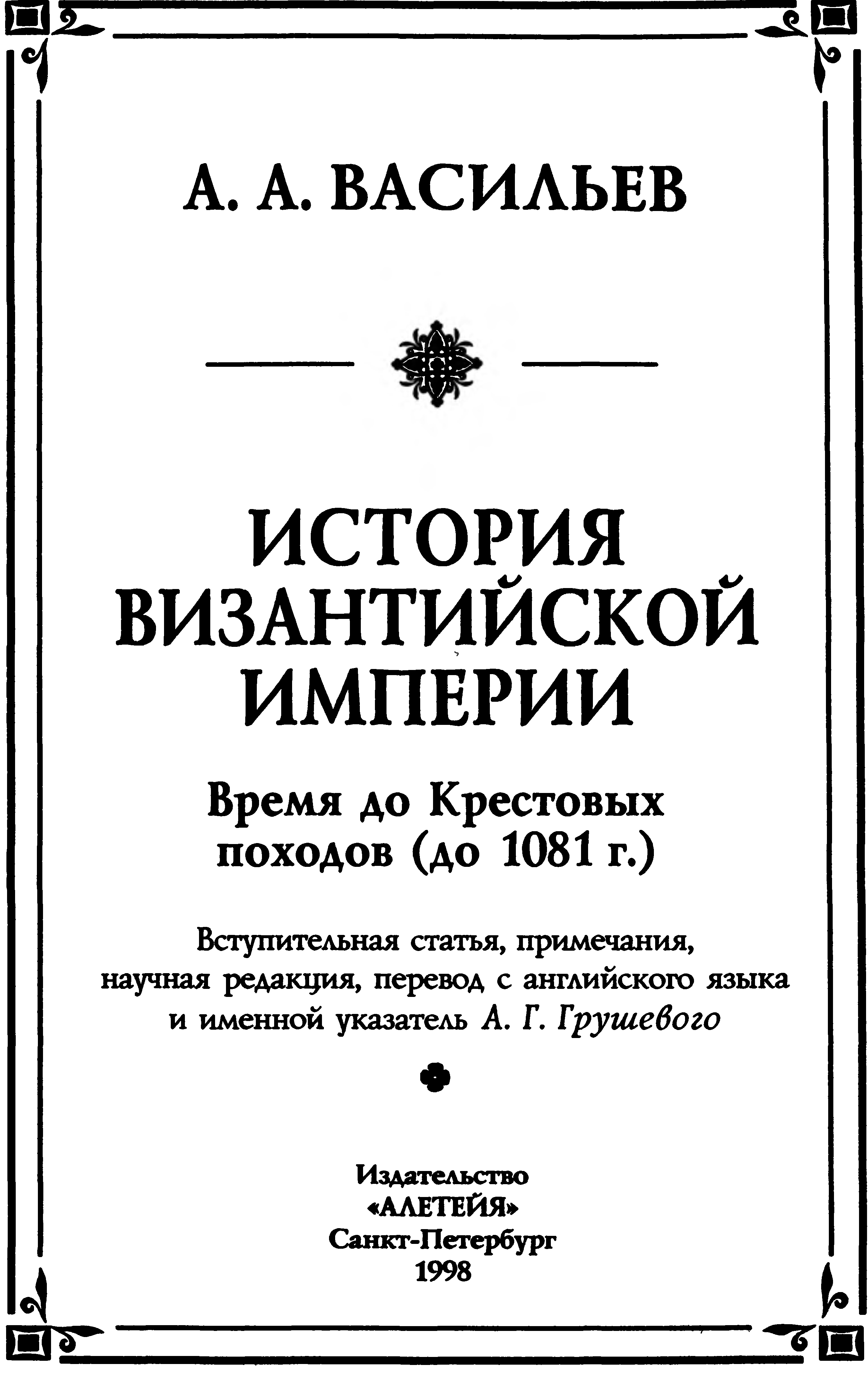 А. Г. Грушевой. К переизданию цикла общих работ А. А. Васильева по истории Византии 5