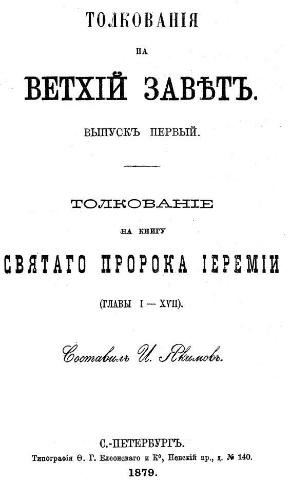 Якимов И. С. Толкования на Книгу Святого пророка Иеремии. Часть 1